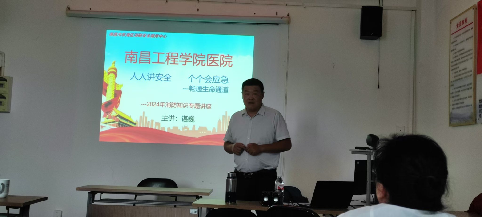 本次消防安全培训邀请了南昌消联安全中心的资深老师谌巍,为大家作了《人人讲安全 个个会应急》消防知识专题讲座,他从火灾的危害、日常的救护、逃生安全护具如何使用等方面进行了讲述,语言生动风趣,在座的听课人员受益匪浅。
