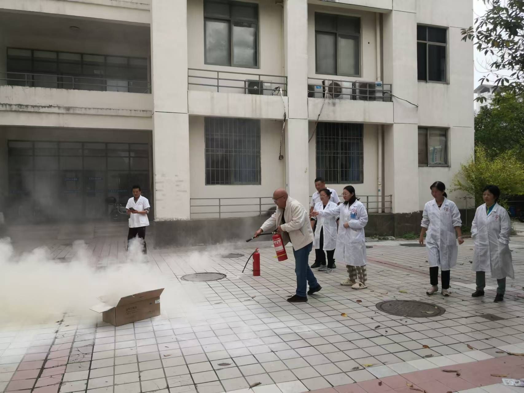 为了进一步提升医务人员的消防安全意识,提高自防自救能力,在突遇火情时能熟练正确使用常规的消防器械,医院于10月15日上午对全体医务人员进行了消防安全培训及消防演练活动。