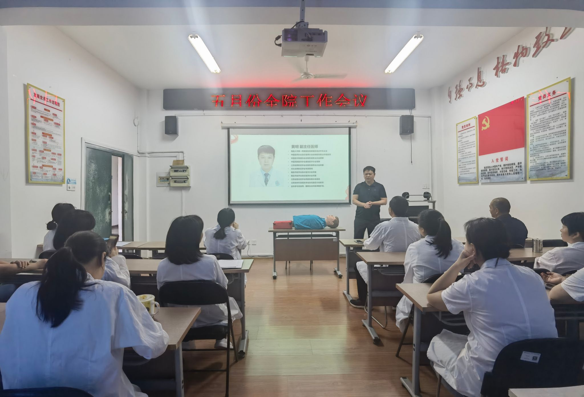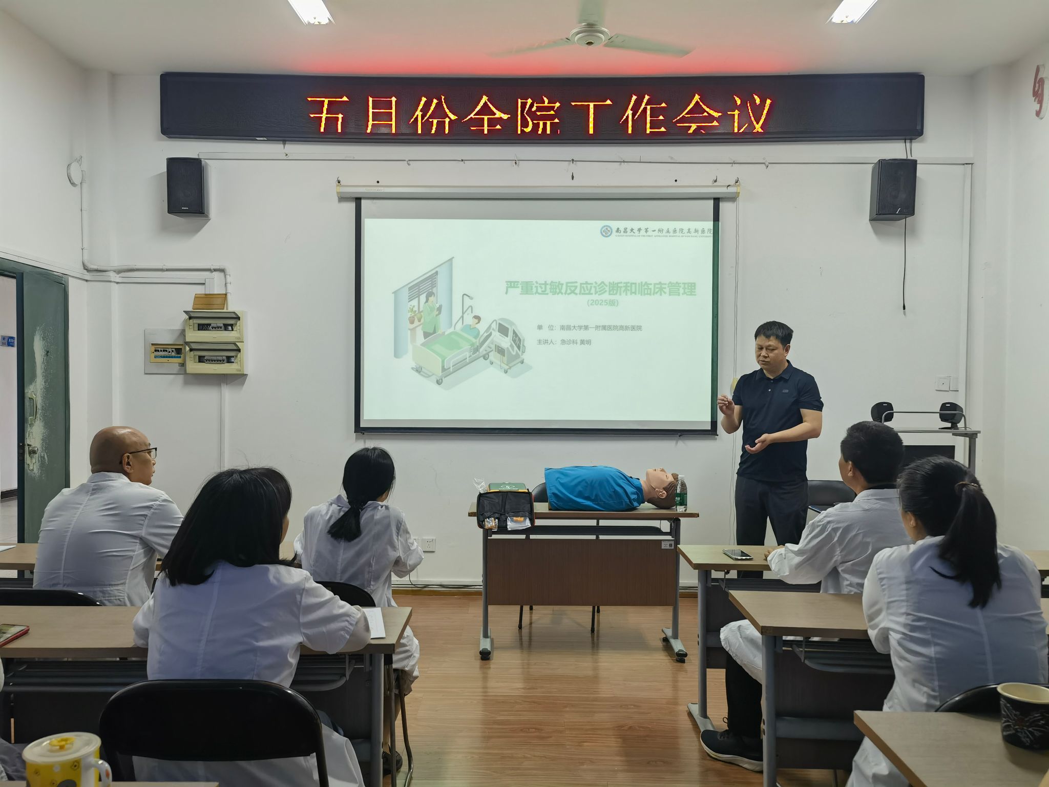 为落实“健康南工行动”计划,提高我院急救保障能力,5月13日上午,校医院邀请江西省重大公共卫生事件医学中心健康促进科负责人、南昌大学第一附属医院急诊外科主任、副主任医师黄明来我院开展《严重过敏反应诊断和临床管理》、《心肺复苏》专业知识讲座,全体医务人员参加培训。